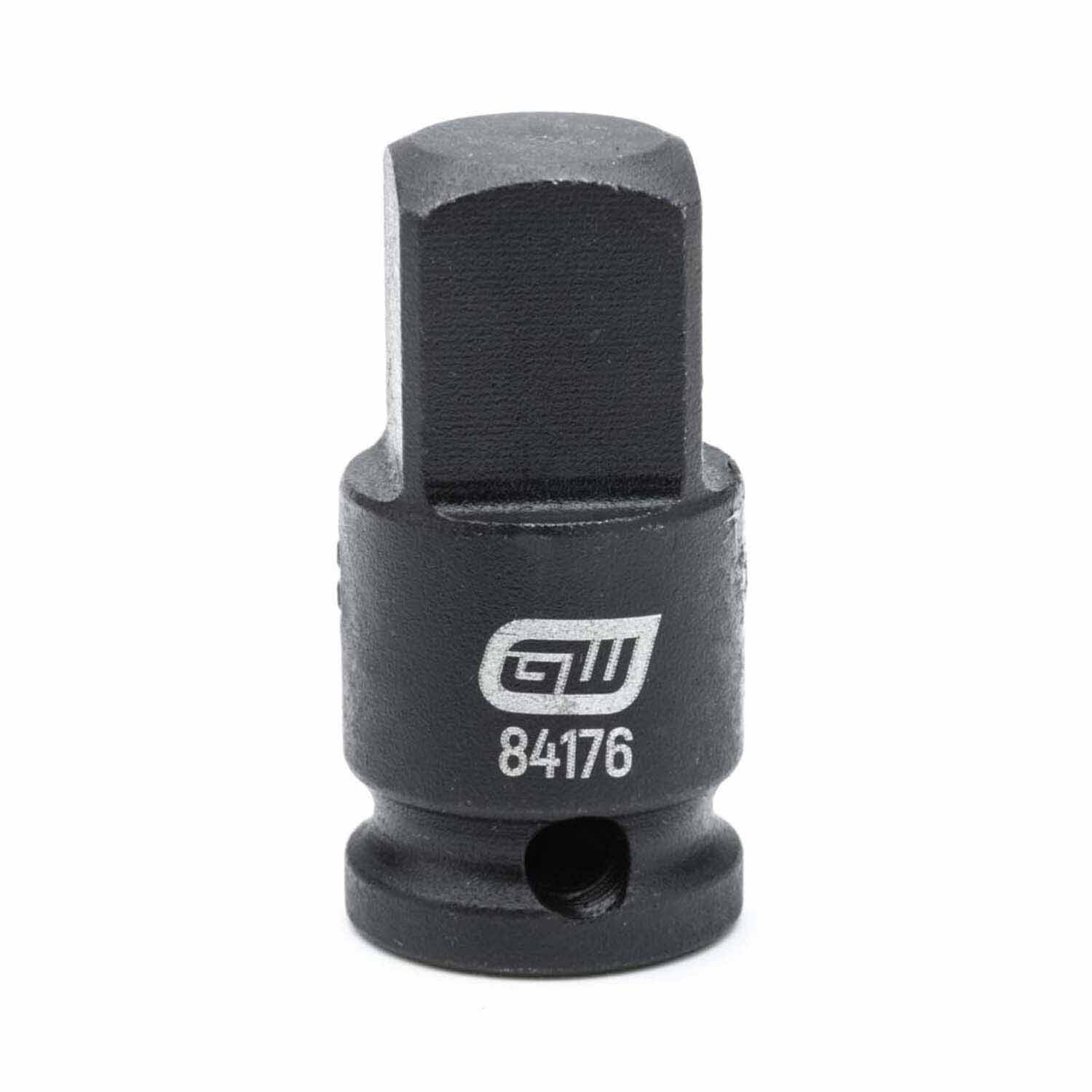 GEARWRENCH impact adapters are made from chrome molybdenum alloy steel providing superior strength. They have a manganese phosphate coating and highly visible laser etched markings. The manganese phosphate coating provides protection from corrosion. The 84176 is a 1/4 In. female x 3/8 In. male increasing impact adapter.
