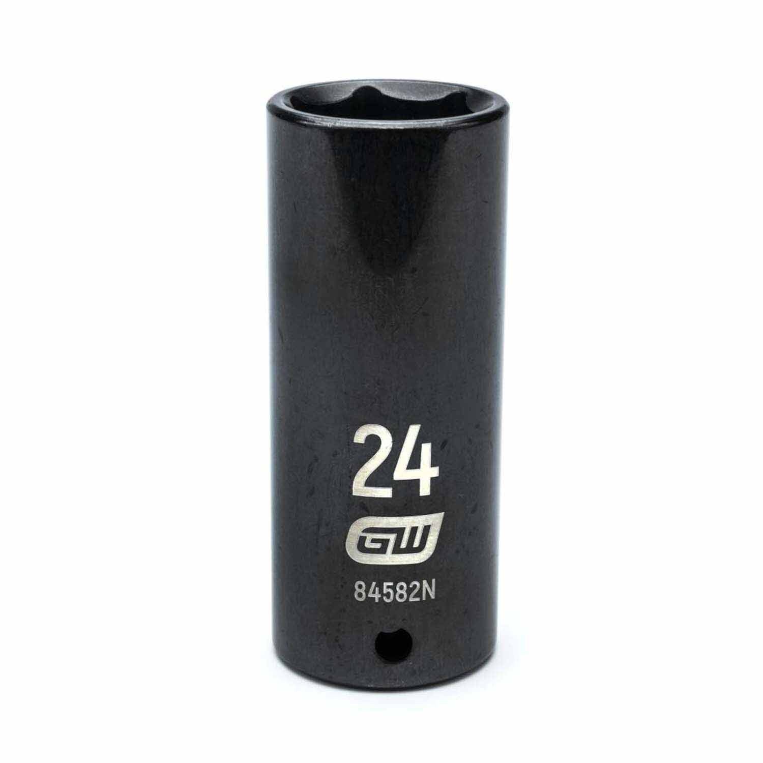 The Gearwrench 1/2" Drive 6 Point Deep Impact Metric Socket 24mm is designed for professional users, offering exceptional strength and durability with a black oxide finish to resist corrosion.