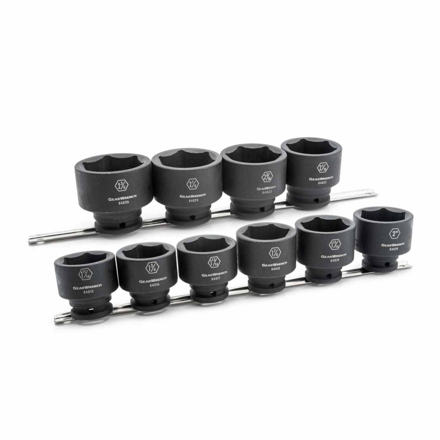 GEARWRENCH offers a wide range of impact sockets in open stock and sets that are designed to deliver the performance and strength that the professional users require. They are made from chrome molybdenum alloy steel for exceptional strength and durability. Sockets have a manganese phosphate coating to resist corrosion. The sockets also feature highly visible laser etched markings and a secondary size hard stamping. The sockets feature off-corner loading to reduce fastener rounding. The GEARWRENCH impact product family will allow the professional user to FORGE AHEAD.