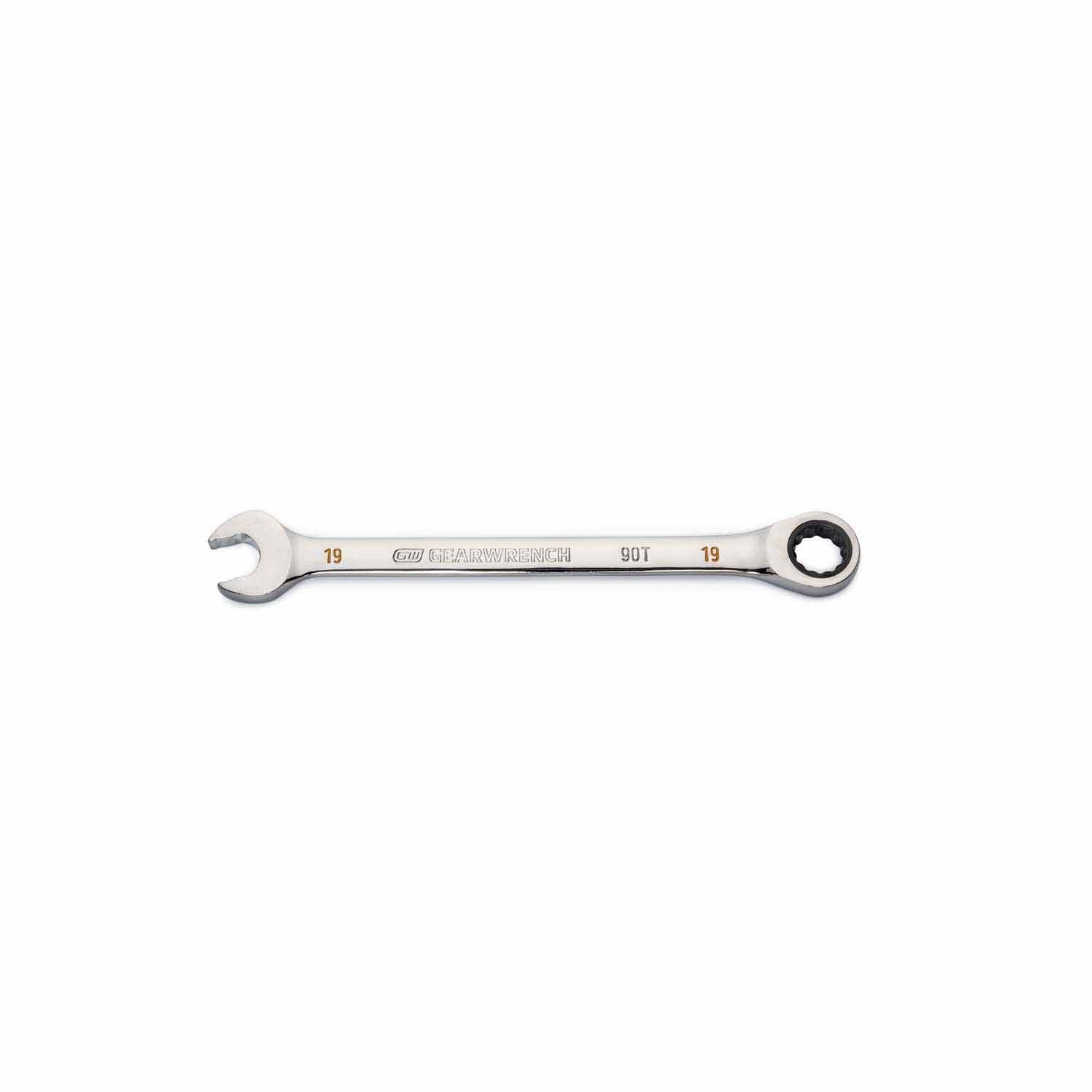 GEARWRENCH 90-tooth ratcheting wrench swing arc of just 4° turns fasteners in extremely tight spaces. Longer, wider beam delivers improved reach, leverage, and comfort. Large color-coded SAE/metric markings make size identification easy. All exceed ASME performance specs and come with the trusted GEARWRENCH Limited Lifetime Warranty.