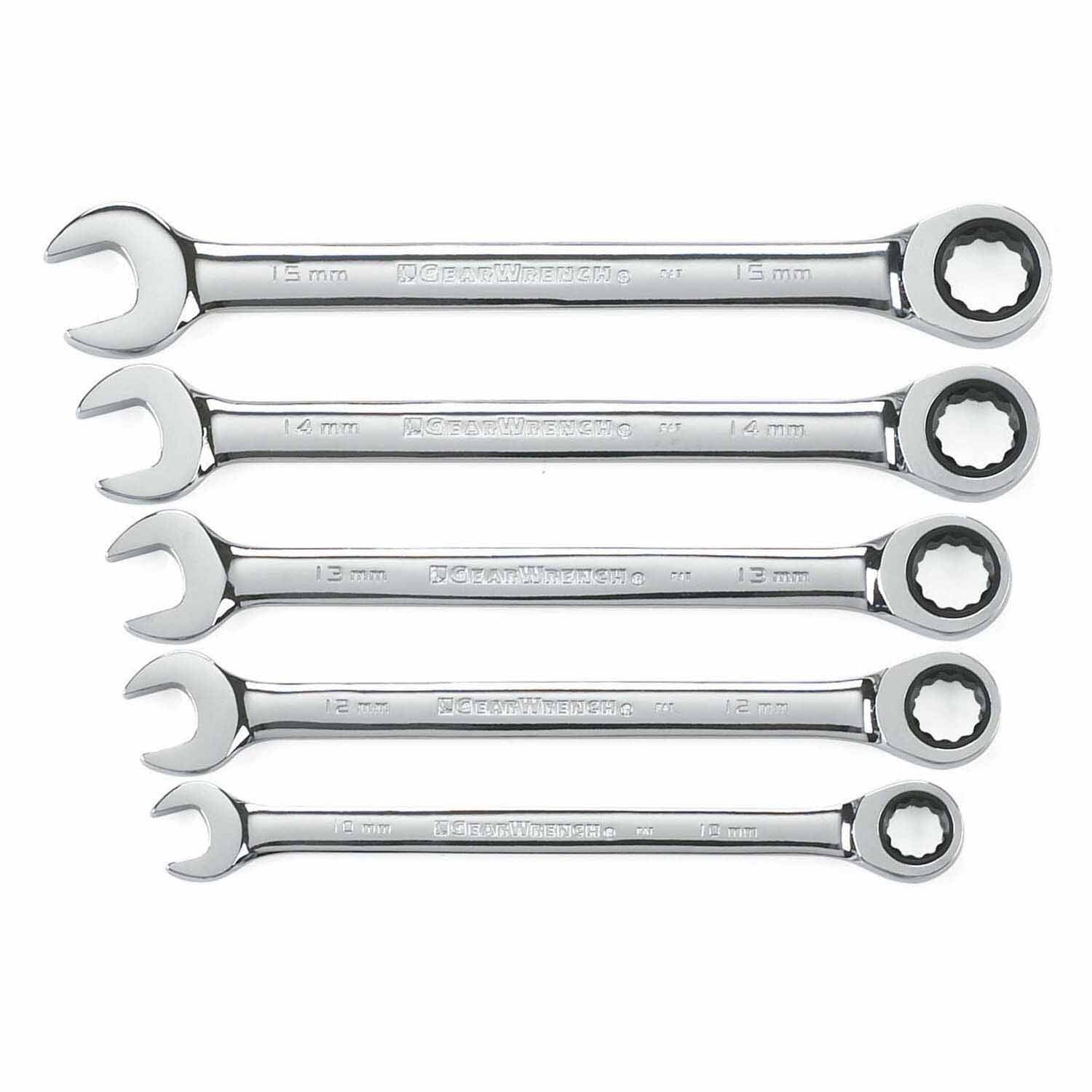 GEARWRENCH Original ratcheting wrenches combine the speed of a ratchet with the access and control of a wrench. They offer the ease of 5 degrees of movement to turn fasteners, versus 30 degrees on standard combination wrenches. The small ratcheting box end head design enables access to tight spots where a ratchet won't fit. The open end allows for easier access on tough to reach spots, making jobs go faster and easier. This set is a great addition to any mechanic tools collection.