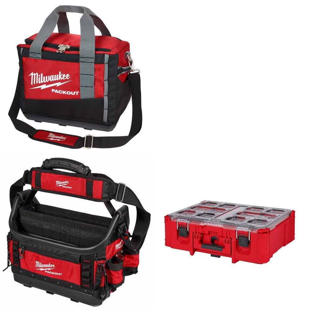 Upgrade your tool storage and organization with this Milwaukee kit, featuring the 15" PACKOUT Tool Bag, 15" PACKOUT Structured Tote, and a FREE PACKOUT Deep Organizer. Designed for professionals who demand durability and versatility, this kit is part of the industry-leading PACKOUT modular storage system. The tool bag and tote offer robust construction and ample storage for tools and accessories, while the deep organizer provides secure, weather-resistant storage for small parts and fittings. Perfect for jobsite mobility and keeping your gear protected and accessible.