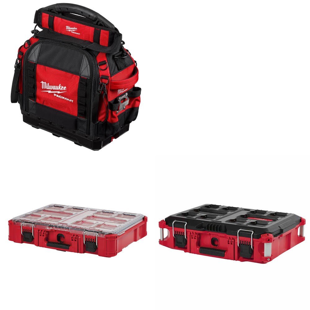 Upgrade your jobsite storage with this Milwaukee kit, featuring the PACKOUT 15" Structured Tool Bag, PACKOUT Organizer, and a FREE PACKOUT Tool Box. Designed for professionals who demand durability and versatility, this kit is part of Milwaukee's renowned PACKOUT Modular Storage System. The 15" Structured Tool Bag offers exceptional organization and rugged construction, while the PACKOUT Organizer keeps small parts secure and easily accessible. The included Tool Box provides heavy-duty storage for larger tools, ensuring your gear stays protected and organized on any job.